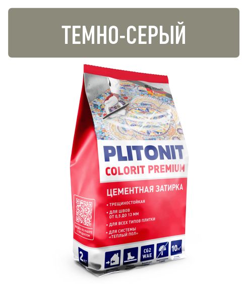 Затирка для швов Plitonit Colorit Premium биоцидная, темно-серая (пакет 2 кг)